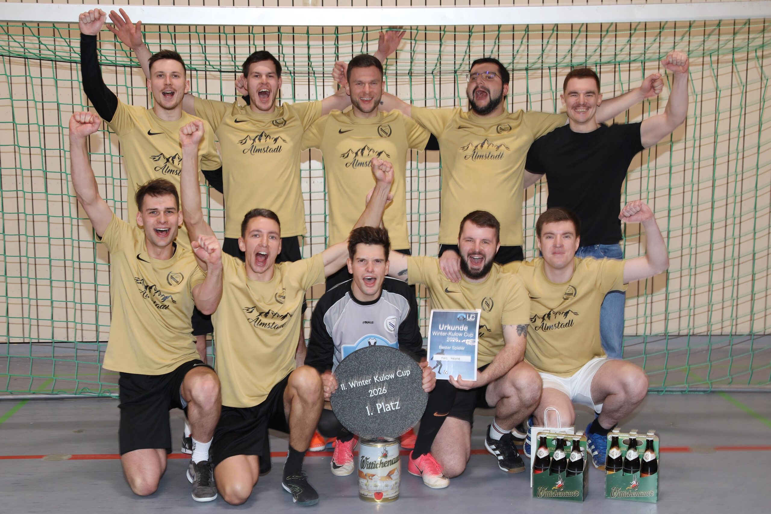 „Heute fand erneut der alljährliche Winter-Kulow-Cup statt, ausgetragen vom Jugendclub Kulow Section – und auch die 11. Auflage war ein voller Erfolg. Insgesamt acht Teams traten an und wurden in zwei Gruppen mit je vier Mannschaften eingeteilt. Die jeweils ersten beiden Teams jeder Gruppe qualifizierten sich für das Halbfinale und kämpften dort um den Einzug ins Finale. Am Ende standen sich Kulowminati und Gut Kickerz im Endspiel gegenüber. In einem spannenden Finale setzte sich Kulowminati mit einem 3:1-Sieg durch und sicherten sich verdient den Pokal. Insgesamt war es ein rundum gelungenes Turnier mit fairen Spielen, guter Stimmung und viel Teamgeist. Die Vorfreude auf den Winter-Kulow-Cup im nächsten Jahr ist jetzt schon groß“, so Marius Schäfer.